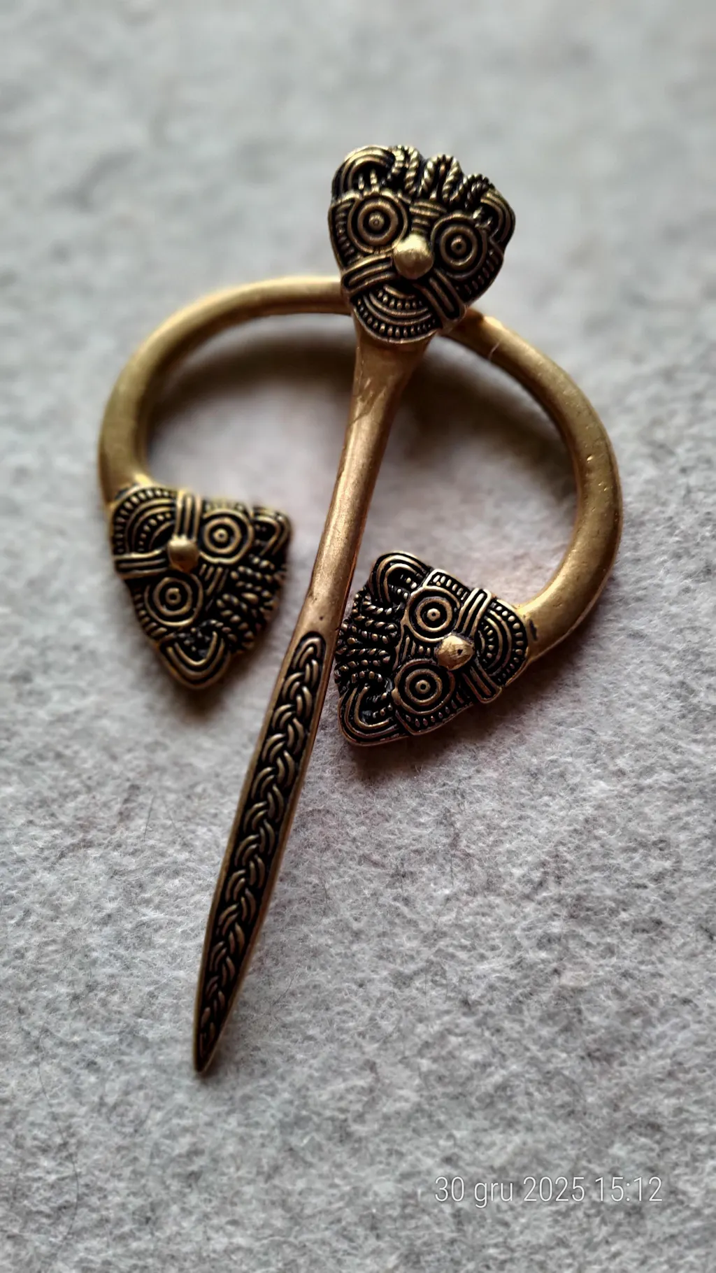 Viking Age Replica Bronze Danish Cloak Pin with Viking Heads