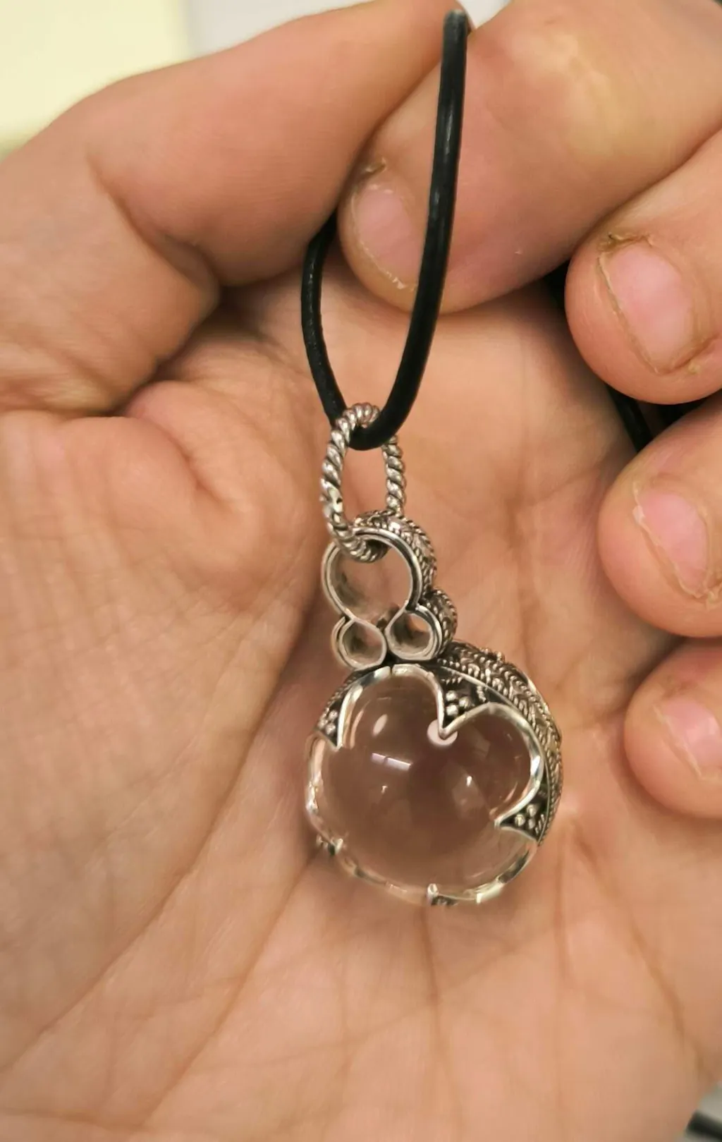 Silver Gotlandic Replica Viking Pendant with Moveable Quartz Crystal Ball.