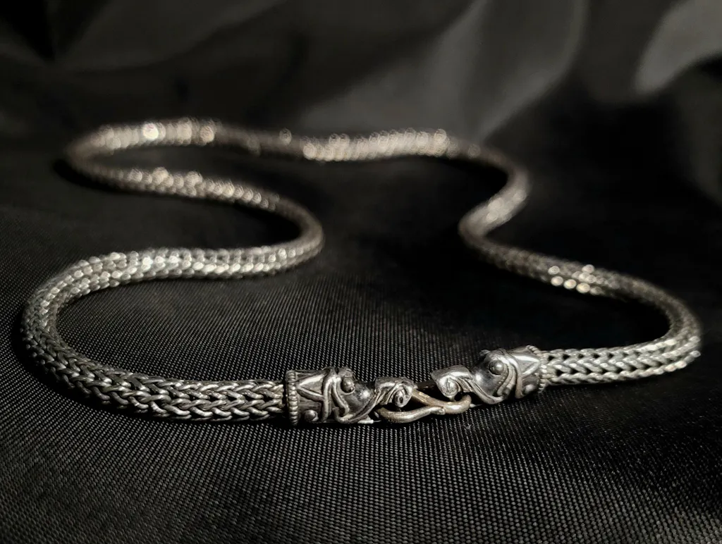 6mm Thick Silver Snake Chain Necklace with Gotland Dragon Heads