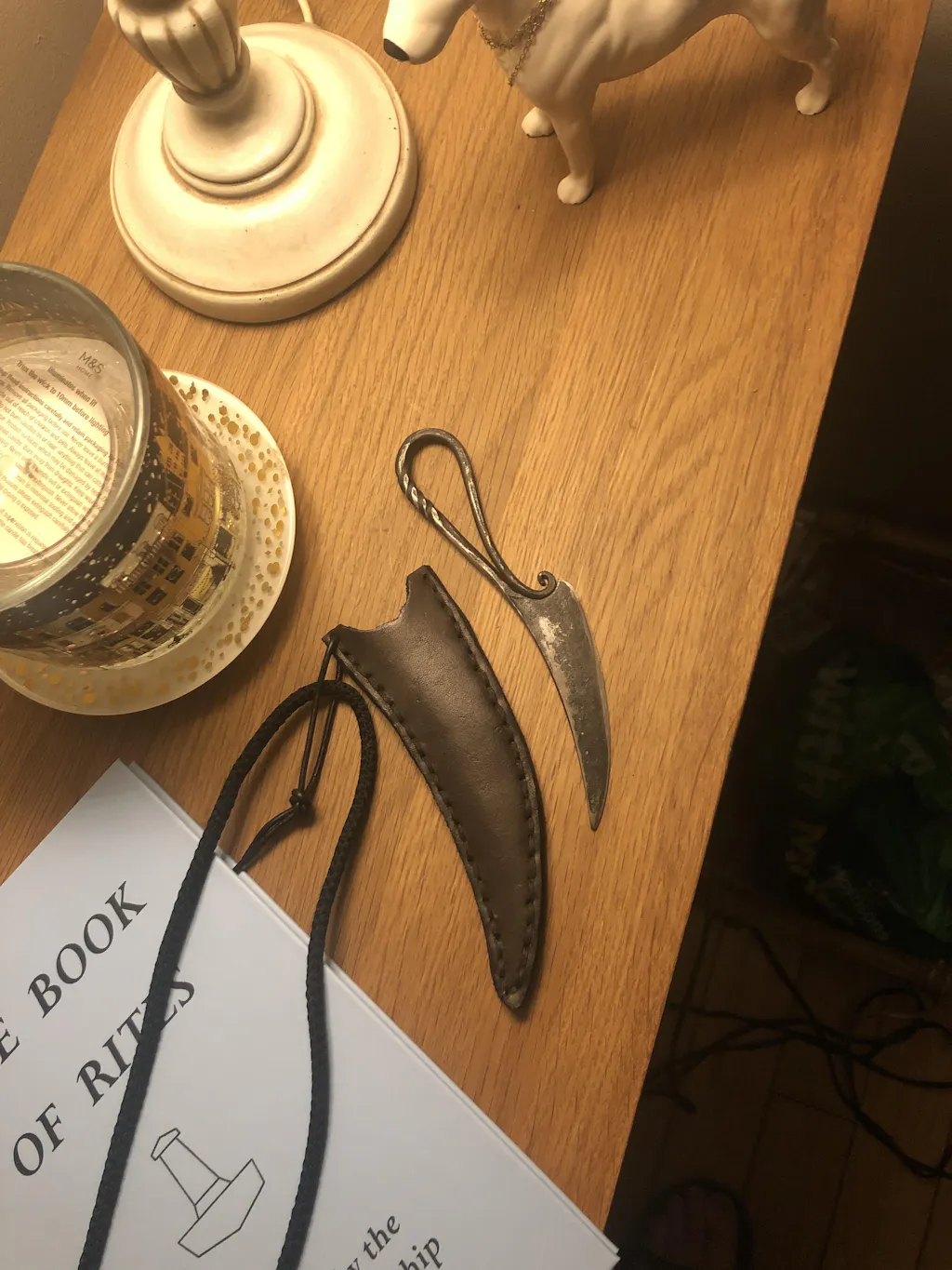 The shape of the knife indicates it would have been used for scraping animal hides, which was traditionally the woman's job in Viking culture. Today it can be used by Viking men or women and handy for various uses, such as eating, leather craft, whittling, skinning, hide scraping, etc.